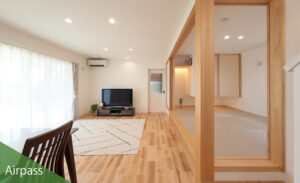 和風テイストに仕上げたかったので、板張り天井や障子、柱・梁など細部までこだわりました。通し柱はヒノキですが、板張り天井や床材は杉で揃えたので統一感があり、柱と梁は標準よりもサイズアップすることで、ダイナミックに木が感じられています。