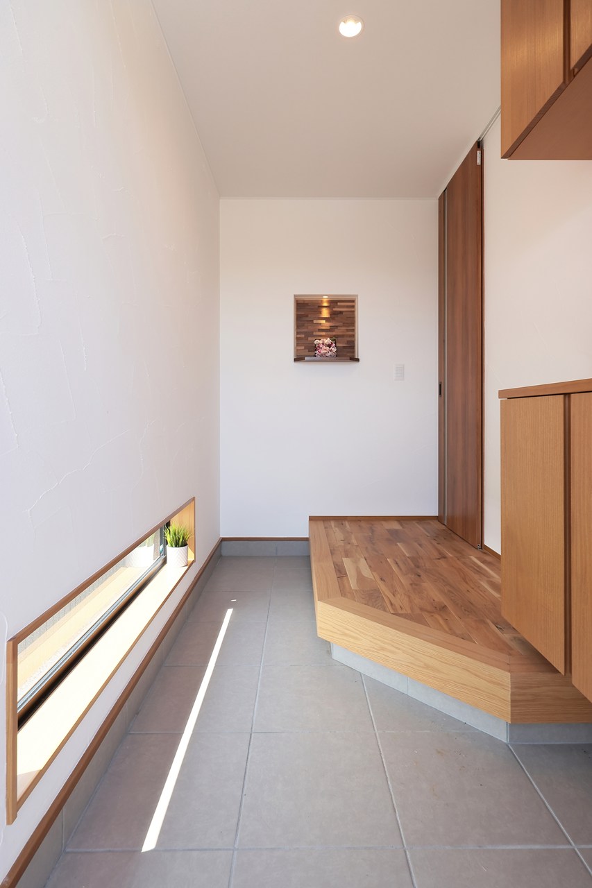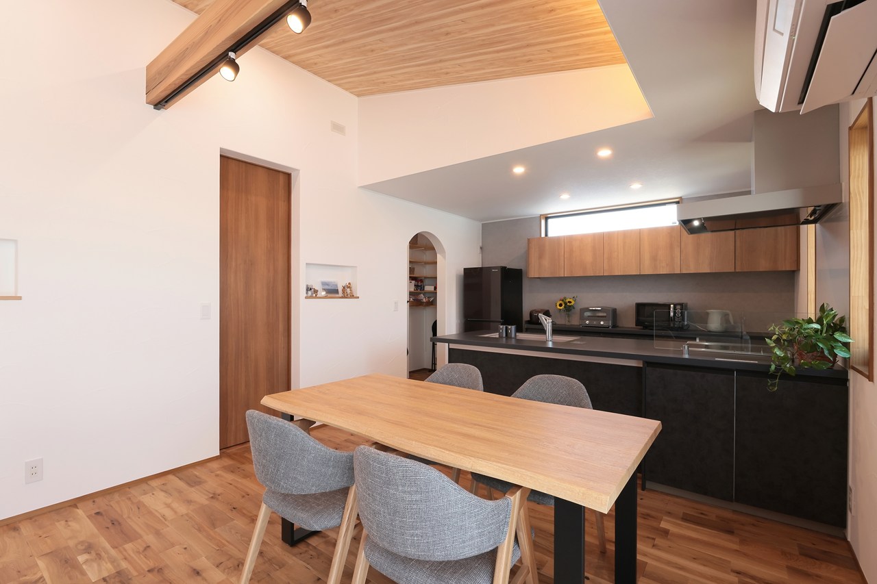 漆喰&無垢材の空間にタイルを加えてより上質な空間に。