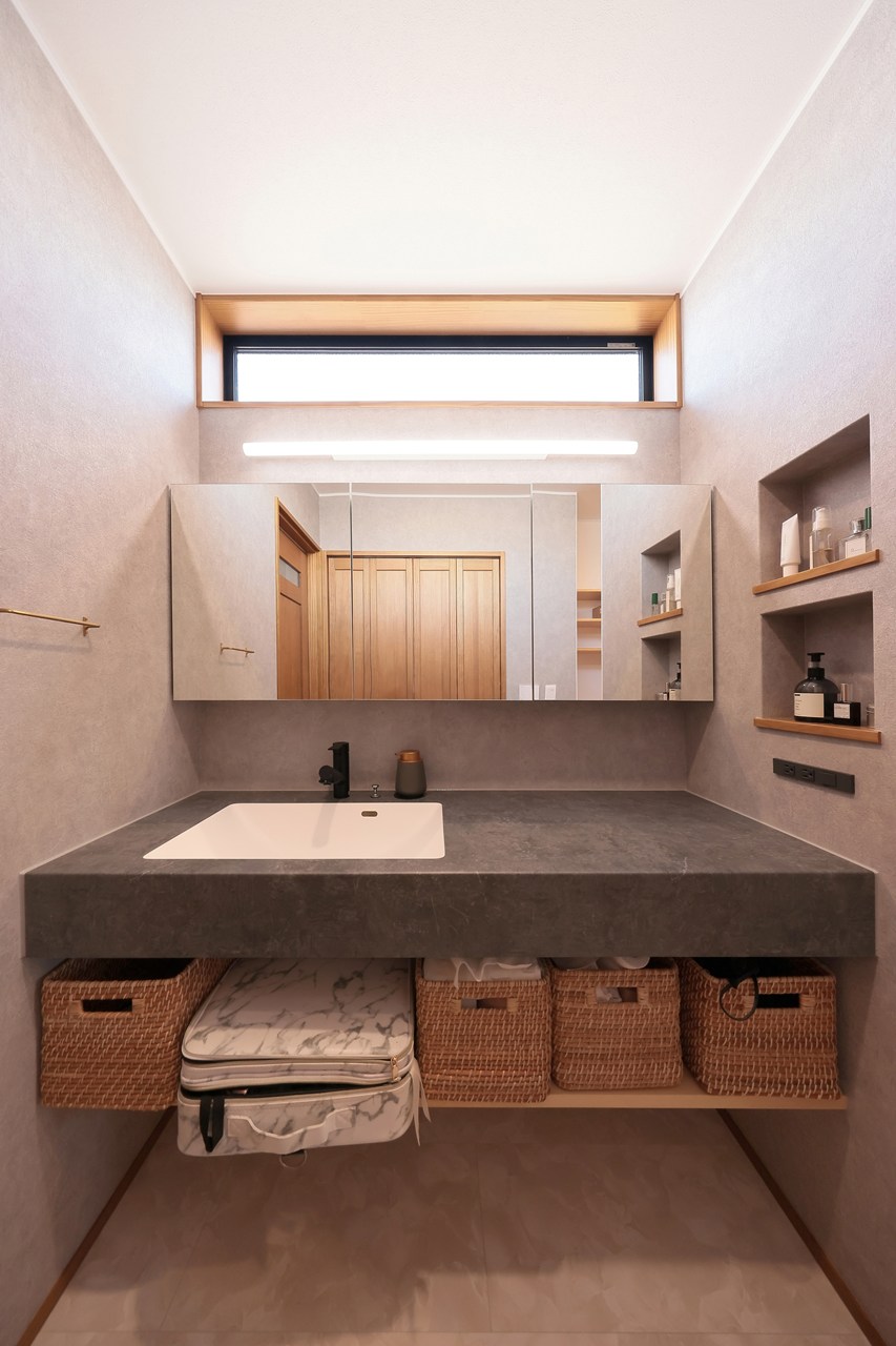 インスタなどSNSで調べていいなと思った施工事例を参考に打ち合わせに臨んでいたのですが、ショールームにもたくさん足を運び、洗面台やハイドアの建具など、自分たちの好みを探すのはとても楽しかったです。