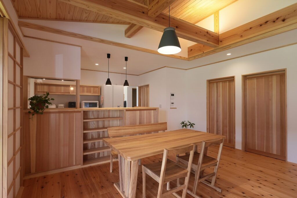 無垢の木は年月が経るごとに色味やツヤが変化していきます。床や柱と同じスピードで変化していくので、何年たっても統一感が損なわれません。