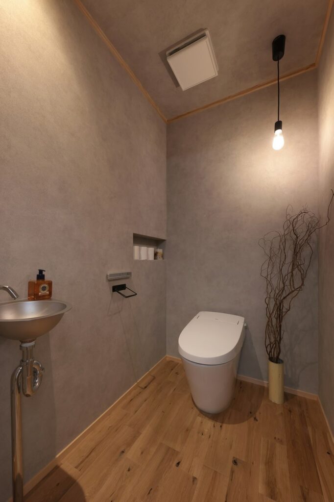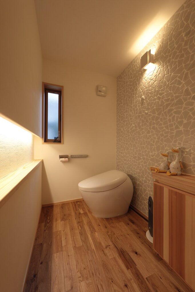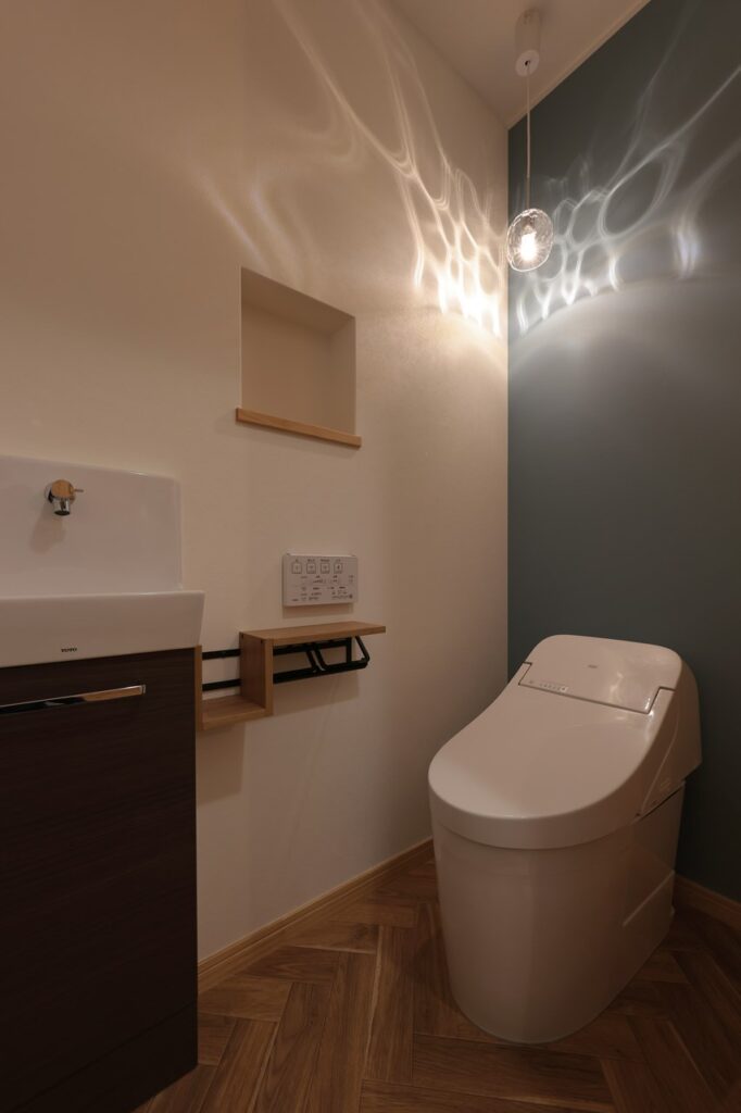 今回はアクセントウォールや照明でこだわったトイレの事例をご紹介します。
